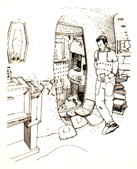 Above: Syd Mead's production painting of Deckard's kitchen. |
