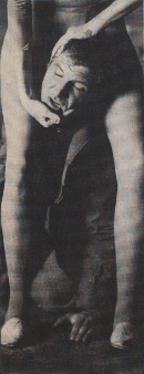 Left: Pris finally release Deckard and, fighting for breath, he manages to squeeze off several shots, stopping her in her tracks. Pris has so much energy and life in her that her body continues to violently kick and thrash as she dies. |